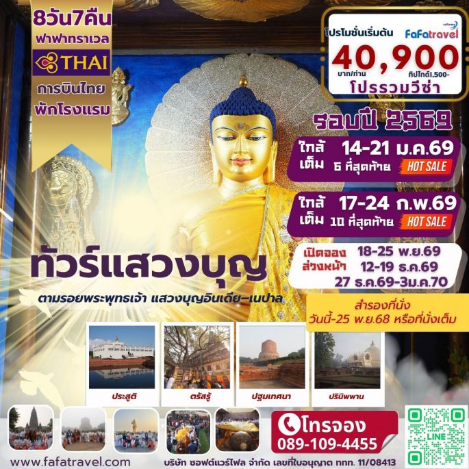 📞 เปิดให้จองแล้ววันนี้! อย่ารอช้า, ร่วมเดินทางไปกับเรา และสัมผัสการเดินทางที่มากกว่าการท่องเที่ยว มาเป็นส่วนหนึ่งของการเดินทางในครั้ง ขออนุโมทนาบุญกับทุกท่าน!”