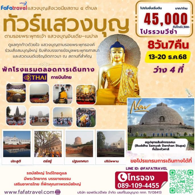 ฟาฟา ทราเวล 🙏ยินดีนำเสนอโปรแกรมแสวงบุญสู่สังเวชนียสถาน ๔ ตำบล ที่คุณไม่ควรพลาด! ✈️🕌
