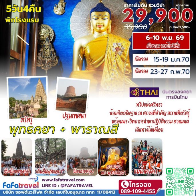 ทัวร์แสวงบุญอินเดีย เนปาล สังเวชนียสถาน ๔ ตำบล พุทธคยา พาราณสี สารนาถ สาวัตถี ลุมพินี(เนปาล) กุสินารา ไวสาลี ราคฤห์ นาลันทา และ พุทธคยา ครบทุกจุดไฮไลท์สำคัญ