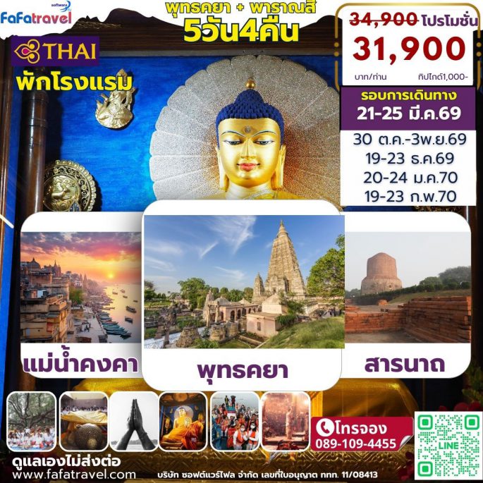 ทัวร์แสวงบุญอินเดีย เนปาล สังเวชนียสถาน ๔ ตำบล พุทธคยา พาราณสี สารนาถ สาวัตถี ลุมพินี(เนปาล) กุสินารา ไวสาลี ราคฤห์ นาลันทา และ พุทธคยา ครบทุกจุดไฮไลท์สำคัญ