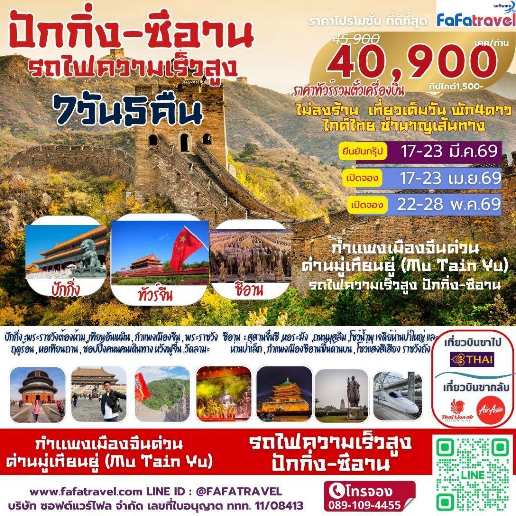 โปรแกรมพิเศษทัวร์จีน เมืองปักกิ่ง – ซีอาน ทัวร์เที่ยวเต็มวันไม่ลงร้าน พัก4ดาว 7วัน5คืน คุ้มค่า