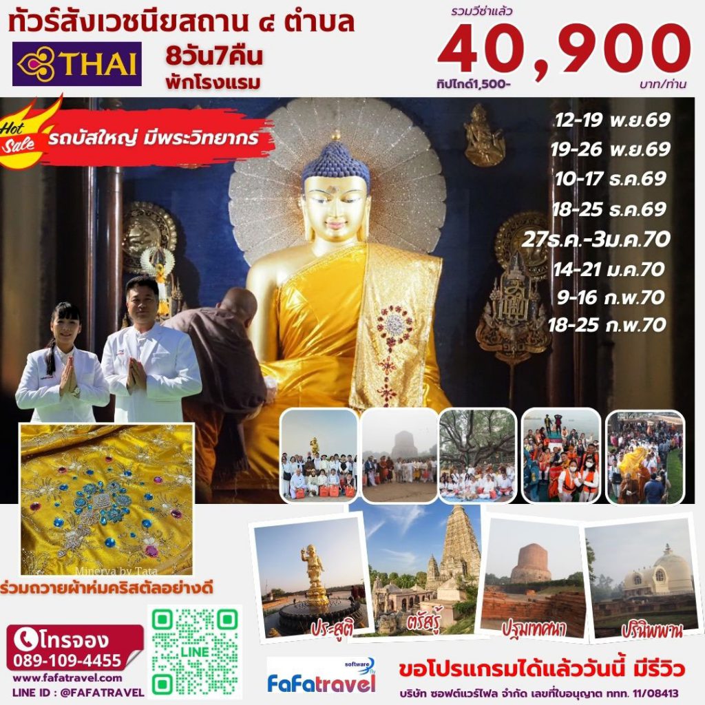 ทัวร์สังเวชนียสถาน 4ตำบล บินตรงลงคยา พักโรงแรมตลอดการเดินทาง