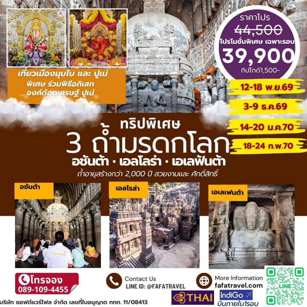 ทัวร์ถ้ำอชันต้า เอลโรล่า เอเลเฟนต้า มุมไบ ปูเน่