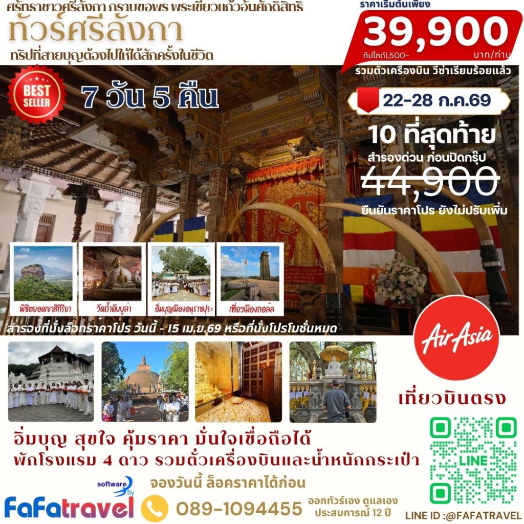 ✨ เสริมพิเศษ! เที่ยวเมืองกอลล์ เข้ากราบภายในพระเขี้ยวแก้วอย่างใกล้ชิด