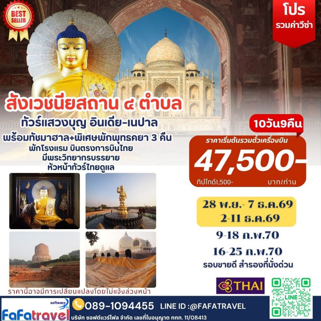 สังเวชนียสถาน 4 ตำบล อินเดีย–เนปาล +เที่ยวทัชมาฮาล