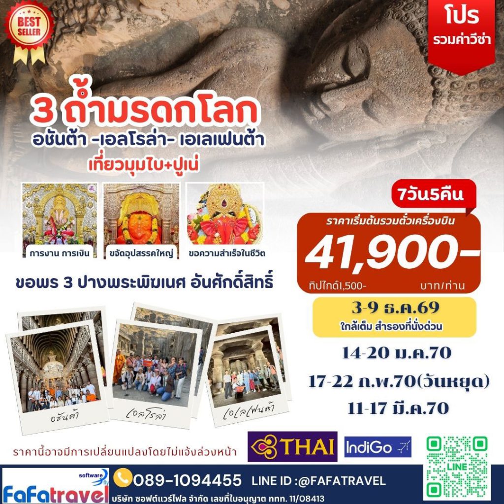 - อินเดีย 3 ถ้ำมรดกโลก (อชันต้า – เอลโลร่า – เอลิฟันต้า)