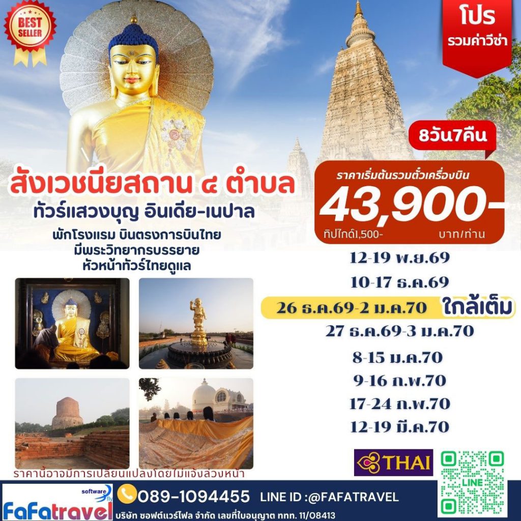 เดินทางตามรอยพระพุทธเจ้า ทั้ง “ประสูติ – ตรัสรู้ – แสดงธรรม – ปรินิพพาน”