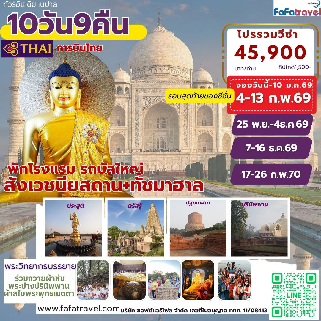 แสวงบุญอิ่มบุญ และ เที่ยวสนุก ครบทุกรสที่พักดี อาหารอร่อย ใส่ใจคุณภาพ ทริปแสวงบุญและท่องเที่ยวอินเดียแบบเต็มอิ่ม 10วัน9คืน การบินไทย พักโรงแรม เส้นทางสุดพิเศษ พร้อมเดินทางแล้ววันนี้ด้วยราคาโปรโมชั่น