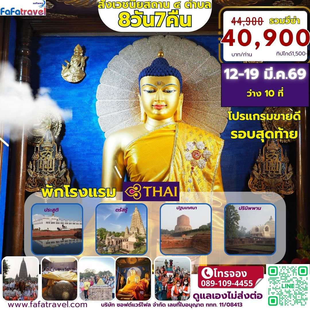 ทัวร์แสวงบุญอินเดีย เนปาล สังเวชนียสถาน ๔ ตำบล พุทธคยา พาราณสี สารนาถ สาวัตถี ลุมพินี(เนปาล) กุสินารา ไวสาลี ราคฤห์ นาลันทา และ พุทธคยา ครบทุกจุดไฮไลท์สำคัญ