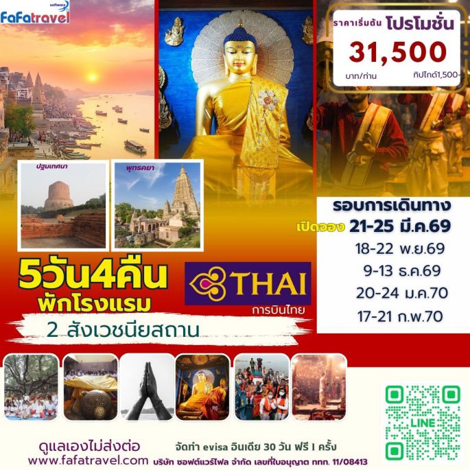- 🛕 รวมถึงการเยี่ยมชมเมืองราชคฤห์, นาลันทา, ไวสาลี, สาวัตถี และแม่น้ำคงคา
