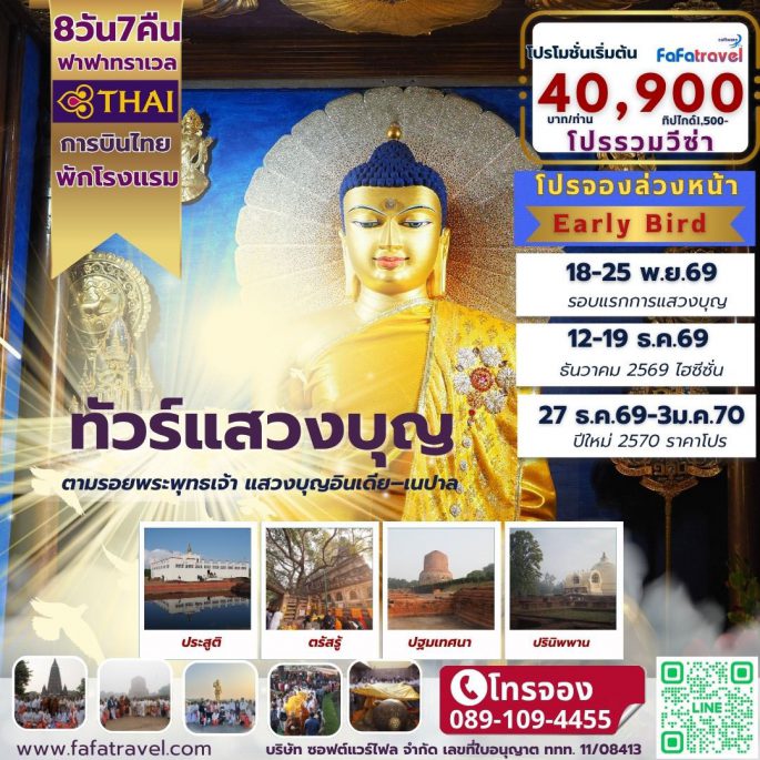 📞 เปิดให้จองแล้ววันนี้! อย่ารอช้า, ร่วมเดินทางไปกับเรา และสัมผัสการเดินทางที่มากกว่าการท่องเที่ยว มาเป็นส่วนหนึ่งของการเดินทางในครั้ง ขออนุโมทนาบุญกับทุกท่าน!”