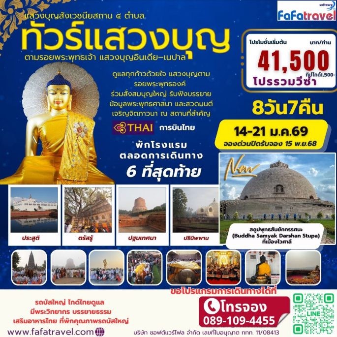 📞 เปิดให้จองแล้ววันนี้! อย่ารอช้า, ร่วมเดินทางไปกับเรา และสัมผัสการเดินทางที่มากกว่าการท่องเที่ยว มาเป็นส่วนหนึ่งของการเดินทางในครั้ง ขออนุโมทนาบุญกับทุกท่าน!”