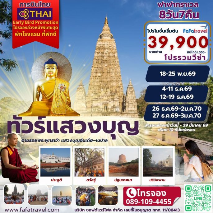 📞 เปิดให้จองแล้ววันนี้! อย่ารอช้า, ร่วมเดินทางไปกับเรา และสัมผัสการเดินทางที่มากกว่าการท่องเที่ยว มาเป็นส่วนหนึ่งของการเดินทางในครั้ง ขออนุโมทนาบุญกับทุกท่าน!”
