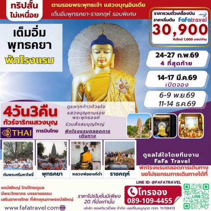 📞 เปิดให้จองแล้ววันนี้! อย่ารอช้า, ร่วมเดินทางไปกับเรา และสัมผัสการเดินทางที่มากกว่าการท่องเที่ยว มาเป็นส่วนหนึ่งของการเดินทางในครั้ง ขออนุโมทนาบุญกับทุกท่าน!”