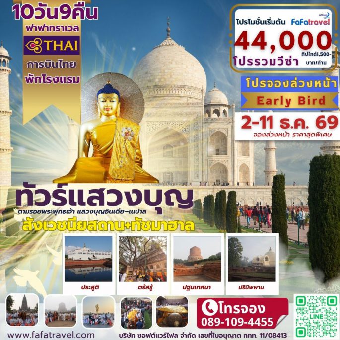 ทัวร์แสวงบุญ อินเดีย เนปาล เดินทางระหว่างวันที่ เส้นทางสังเวชียสถาน และ ทัชมาฮาล เดลี สวัสดีทุกท่านในวันที่ 20 กุมภาพันธ …