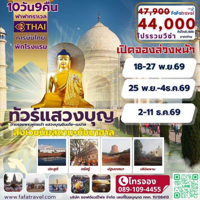 🙏 สัมผัสประสบการณ์ศาสนาและวัฒนธรรมอันล้ำค่า ณ สังเวชนียสถาน 4 ตำบลในอินเดียและเนปาล กับทัวร์พิเศษ 8 วัน 7 คืน เดือนพฤศจิกายน 2567 รอบการเดินทาง