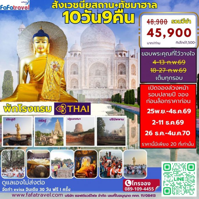 ทัวร์แสวงบุญ อินเดีย เนปาล เดินทางระหว่างวันที่ เส้นทางสังเวชียสถาน และ ทัชมาฮาล เดลี สวัสดีทุกท่านในวันที่ 20 กุมภาพันธ …